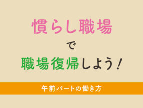 転職 2021.04.16 「ならし保育」ならぬ「ならし職場」午前パートの働き方のご提案! みなさんこんにちは。「復帰したいけれど子育てがあるからフルで働くのは難しい」「家事があるから時短パー […] パート介護職員働き方午前勤務午後勤務